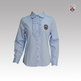 Intermediate School Girls Long Sleeve Ruffled Blouse 9-10 Yrs Light Blue..